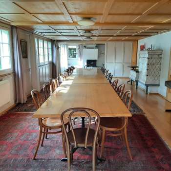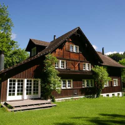 The premises of the Löchli covers about 1.4 hectares in a pristine natural setting, which includes forests, streams and meadows, ideal for leisurely strolls or adventurous exploration. The large two-level lawns in front of the house are perfect for games, fun and relaxation. The large house is very comfortably furnished. The spacious single and double rooms are extremely popular.