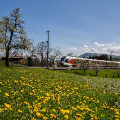 The unique and colorful Swiss landscape with its mountains, valleys and lakes, which slowly passes by the window of the SOB trains, impresses and fascinates tourists and locals alike. The most beautiful destinations along the SOB railroad line are well suited for a day trip or stopover.