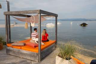 The TIKI beach bar in Goldach has been the summer place-to-be for relaxed coziness with a vacation feeling since 2008 - whether with friends, family or as a couple. Chilly four-poster beds, a clear but varied offer of drinks & snacks and breathtaking sunsets - what do we want sea?