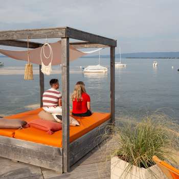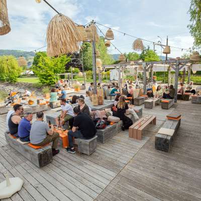 The TIKI beach bar is located directly at the Goldach harbor and is open every day during the summer season, from May to September, weather permitting.