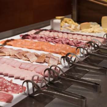 Choose from a balanced buffet of egg dishes, breakfast bacon and chipolata, various muesli, a selection of regional breads, fruit juices, a selection of cheeses from regional production as well as cold cuts from the local butcher's, various yogurts and much more. Egg dishes of your choice are prepared at the live station.