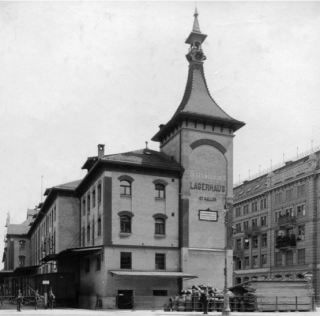 L'entrepôt de la Davidstrasse 40-46 symbolise, avec la gare ferroviaire et la poste principale, l'importance de Saint-Gall en tant que site économique et point de transbordement de marchandises.