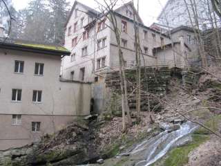 Histoire : Depuis le 14e siècle, plusieurs moulins ont profité de la chute de la Steinach dans les gorges sauvages de la Mülenen. La propriété Mühlenstrasse 30 était l'un d'entre eux et, au 18e siècle, elle était sous l'administration du Stockamt, qui approvisionnait les nécessiteux à partir de la caisse d'offrande de l'église. En novembre 1800, la propriété a été vendue au meunier privé Silvester Mittelholzer. Après d'autres changements de propriétaire, elle est revenue en 1857 à l'apprêteur Jacob Hungerbühler. Dans un apprêt, les tissus écrus sont traités selon les idées de la clientèle, par exemple lissés et amidonnés, ce qui nécessitait beaucoup d'eau. En 1873, le meunier Franz Anton Köppel rachète les bâtiments et passe à la vapeur en 1883, ce qui lui permet d'exploiter une fabrique de pâtes alimentaires. Différents producteurs ont successivement repris l'entreprise jusqu'à ce que le dernier propriétaire fasse faillite et que la banque cantonale reprenne l'immeuble en 1937. Les conditions de production dans l'étroit Steinachtobel ne correspondaient plus non plus aux exigences actuelles. Architecture : Il s'agit d'un bâtiment sobre de trois étages pleins avec une lucarne d'ascenseur. Au sous-sol, la sortie ronde de l'ancien canal de la turbine est visible. Utilisation actuelle : Aujourd'hui, le bâtiment sert d'immeuble d'habitation avec plusieurs parties.