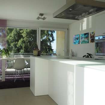 Le bel et attrayant appartement de 3 ½ pièces se trouve au 1er étage avec vue sur le lac de Constance. Avec ses 105 m2, l'appartement est très confortable et entoure une loggia de 27 m2 accessible depuis chaque chambre.