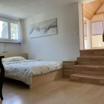 - Chambre : lit 1.60m/2.00m avec douche/WC