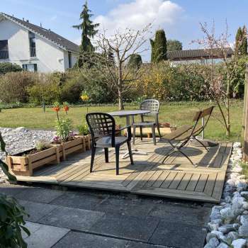 - Chambre : lit 1.40m/2.00m avec douche/WC