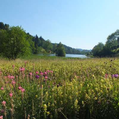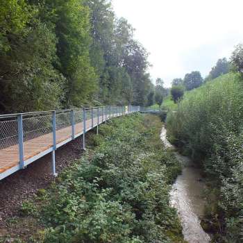 Ce magnifique chemin débute près de l'étang Weniger. Des petits bancs et des murs invitent à la détente. Des prairies fleuries juteuses bordent le chemin. Selon la saison, il est possible de voir et d'entendre des crapauds ou des grenouilles, car il s'agit également d'une importante zone de reproduction pour les amphibiens. À la fin de l'étang, le chemin traverse des sections de forêt et traverse des ponts le long de la Steinach.