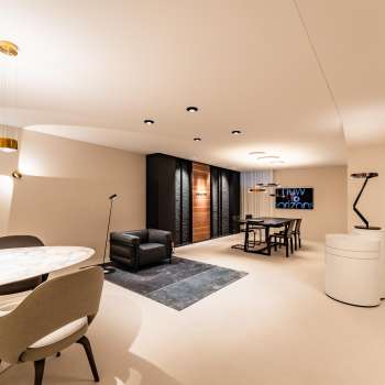 Le magasin d'ameublement propose une sélection de classiques intemporels ainsi que des meubles et des luminaires design actuels. Avec des échantillons de matériaux et de couleurs, des exemples de projets et de l'art, Domus crée la base d'un aménagement très personnel. Mais il s'agit de bien plus que de meubles et de luminaires. Domus se consacre à la planification des espaces de vie et de travail. L'aménagement et l'éclairage en font partie. Ainsi, les architectes d'intérieur de Domus réalisent, en collaboration avec des partenaires, des projets de transformation complets, y compris la direction des travaux, pour des particuliers et des entreprises. L'offre est complétée par des conseils sur les produits dans l'exposition, la planification de l'aménagement et des conseils sur les couleurs par des experts en couleurs formés. Dans la cuisine d'exposition, conçue et produite par la manufacture de meubles de Heerbrugg, des cours de cuisine sont organisés en collaboration avec Pro Table.
