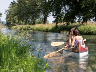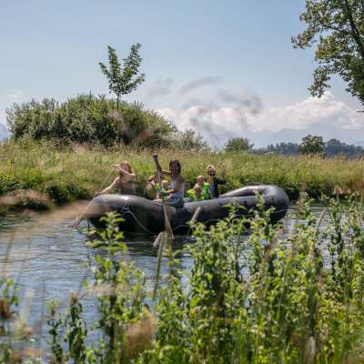 Seul le point de départ du voyage devient une expérience : des kangourous, des vaches, des poules, des chiens et de nombreux autres animaux accueillent les visiteurs à la ferme Steigmatt à Montlingen. De là, vous reprenez la pagaie et commencez la confortable promenade en bateau sur le canal intérieur de la vallée du Rhin. En raison du faible courant dans le canal et de la faible profondeur de l'eau, le tour en bateau est adapté à tous les groupes d'âge. Pendant le voyage, vous pouvez faire une pause pique-nique sur le rivage à tout moment.