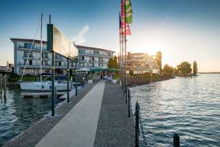 Sur le plan culinaire, l'hôtel Bad Horn & Spa propose différents itinéraires pour prendre le large. L'un des points forts de l'établissement est le "Faro Bar", conçu comme le pont d'un paquebot de luxe - avec vue sur l'immensité du lac de Constance. Lors des froides journées d'hiver, le feu de cheminée réchauffant invite à la détente et lors des journées d'été ensoleillées, la terrasse panoramique.