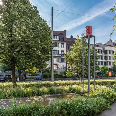 Le petit mais charmant Grabenpärkli se trouve à proximité de la gare de Saint-Gall. Des bancs de parc bordent les beaux parterres de fleurs et invitent à la détente. Le véritable point de mire est la sculpture de Roman Signer, un important artiste spécialisé dans les explosions. D'un tonneau rouge vif, un jet d'eau puissant et abondant s'écrase sur le sol.