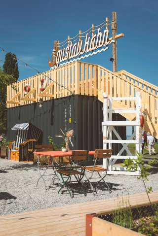 Gustav a aménagé son nouveau chez-soi avec amour, avec des souvenirs de ses voyages : Des meubles vintage italiens aux couleurs vives répandent une ambiance joyeuse sur la place du port. Gustav a également le sens du détail pour les plaisirs du palais. En effet, c'est un gourmet durable. Une alimentation saine et régionale est si importante pour lui qu'il cultive ses propres salades et herbes aromatiques. Mais tout en étant régional, il reste ouvert sur le monde : À Hawaï, il a appris à préparer de délicieux Poké Bowls, en Amérique du Sud, il est devenu un spécialiste des grillades et les Britanniques lui ont fait découvrir le fish & chips. En Turquie, il s'est intéressé à l'infusion du café et depuis qu'il est en Espagne, il vit sa passion pour les cocktails. Il prépare tous ces délices pour ses clients dans sa péniche toujours fiable.