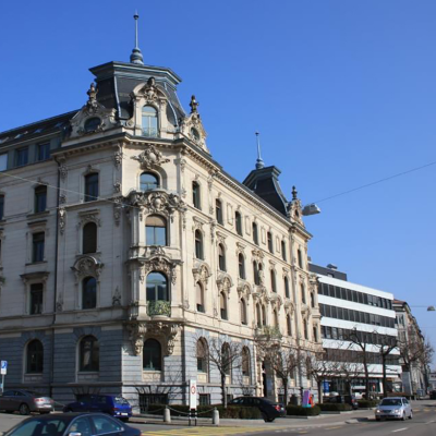 Histoire : Leopold Iklé (1838-1922), fils d'une famille de commerçants juifs de Hambourg, s'installa à Saint-Gall en 1861 après avoir eu des contacts commerciaux. Il s'y engagea dans des comités de commerçants et d'industriels de premier plan. Homme d'affaires et cosmopolite, esthète et fabricant, il se passionne pour la broderie et le développement de nouvelles techniques de fabrication. Avec son frère Adolf (1852-1923), il dirigea la société Iklé-Frères AG, l'une des entreprises leaders dans la fabrication de broderies et l'exportation. En 1923, la célèbre entreprise textile Stoffel s'est installée dans la maison Washington et a acheté le bâtiment la même année. En 1986, la maison a été transférée à Helvetia Société suisse d'assurance incendie.  La finesse des tissus exigeait non seulement un sens commercial et des connaissances, mais aussi des mesures de protection pour réduire les risques de volumes de transport toujours plus importants à un niveau supportable pour l'entreprise.