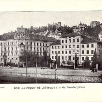 L'architecture : Le palais néo-baroque de la ville de Vienne, Washington, est en calcaire blanc et s'étend sur quatre étages. Les ailes latérales à angle droit entourent une cour intérieure. L'étage principal est en granit, tandis que les trois étages supérieurs sont recouverts de calcaire blanc et richement décorés. La porte d'entrée centrale donne sur une cour. Utilisation actuelle : Après une rénovation complète, l'université de Saint-Gall (HSG) a emménagé dans le bâtiment. La maison Washington offre environ 6'000 mètres carrés d'espace pour des salles de cours et des bureaux.