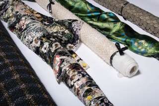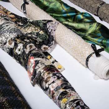 L'équipe de conception crée plus de 1 200 nouveaux modèles de tissus par an - toujours avec la prétention de convaincre les clients du monde entier avec des idées innovantes et un travail de haute qualité. Les tissus sont conçus, testés et réalisés à Saint-Gall. La production interne et la coopération étroite avec des entreprises partenaires locales permettent à Jakob Schlaepfer de travailler de manière expérimentale et de réagir avec souplesse aux changements constants de la mode.