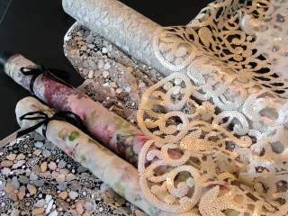 Divers tissus de mode et d'intérieur ainsi que des accessoires sont disponibles dans la boutique.