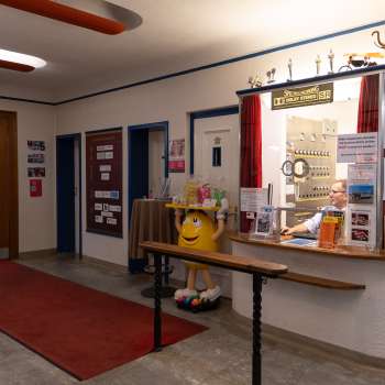 Die Kinokasse ist 45 Minuten vor der Vorstellung geöffnet, bei Bühnenprogrammen sind es 90 Minuten.