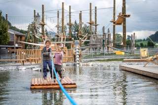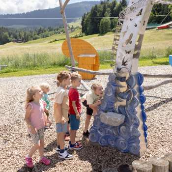 9 stations ludiques proposant des énigmes et de nombreuses informations intéressantes sur les plantes et les animaux attendent d'être découvertes. Une couronne d'escalade, un monde aquatique avec un radeau, des jeux d'eau et un étang féérique invitent à de nouvelles aventures. Dans le parc à boules, une boule représentant un animal totem est envoyée en voyage à travers les quatre éléments. Un trampoline géant permet de réaliser des sauts incroyables. Durée nécessaire : 2 à 4 heures. Convient aux enfants de 2 à 12 ans. Recommandation : emportez une serviette de bain.