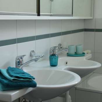 Grand corridor, WC séparés avec lavabo.