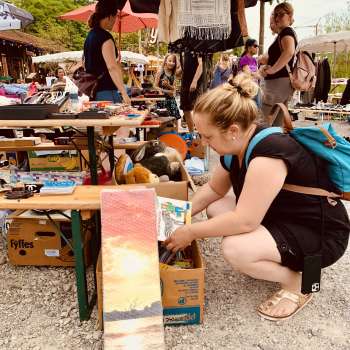 Fouiller tranquillement dans les vieux objets, marchander et profiter de la super ambiance sur l'Areal Bach Platz.
