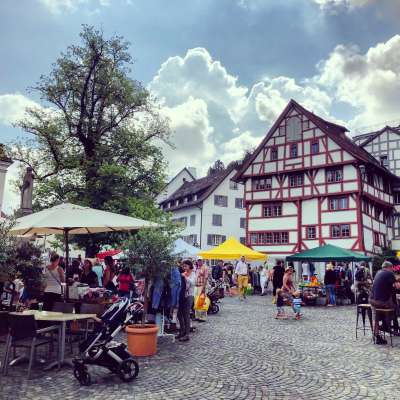 D'avril à novembre, le premier samedi du mois, les stands du marché aux puces décorent la Gallusplatz.