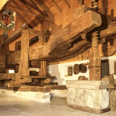 L’imposante bâtisse près du pressoir, qui a été construite sur les fondations de la colonie alémanique «Kelnhof», abrite une collection d’objets locale. Des objets issus de la viticulture et de l’arboriculture, de la tonnellerie et poterie et provenant du temps de grand-maman témoignent du passé historique. Dans la pièce annexe qui est utilisée pour des réceptions et des apéritifs, un splendide pressoir de l’an 1682 saute aux yeux.