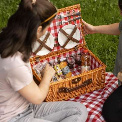 La société Kündig Feinkost AG, qui possède des sites à Saint-Gall et à Rorschach, vous a préparé un panier avec différentes gourmandises. Pour pouvoir s'asseoir au sec, il y a un tissu coloré qui sert de couverture de pique-nique. Celui-ci raconte la vision des frères Riklin et du BIGNIK. Le panier pique-nique peut être réservé pour 2 ou 3-4 personnes. D'autres spécialités peuvent être achetées directement sur place auprès de Kündig Feinkost AG.