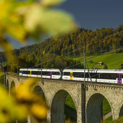 Thurbo est le chemin de fer régional innovant qui relie la Suisse orientale à un réseau dense et à une large gamme de services. C'est le chemin de fer de loisirs et d'excursion idéal pour les personnes actives et les connaisseurs. Le Thurbo Land offre quelque chose pour tout le monde et attend d'être découvert. Prenez les invitants trains articulés avec leurs grandes fenêtres panoramiques jusqu'à votre destination d'excursion ou jusqu'au point de départ de votre randonnée ou itinéraire cyclable. En chemin, vous pouvez faire une pause, vous arrêter pour prendre un rafraîchissement ou visiter des lieux d'intérêt.