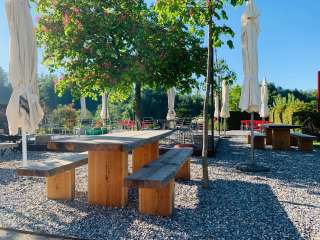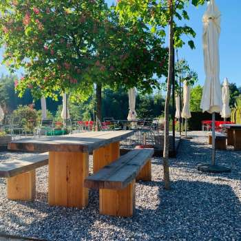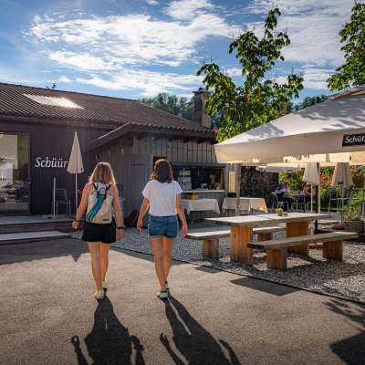 La visite de l'Erlenholz peut facilement se combiner avec une promenade à pied ou à vélo. La situation entre la Sitter et la lisière de la forêt garantit le repos et fait de l'Erlenholz un but d'excursion très apprécié. Les uns viennent pour "Sünnelen" dans l'agréable bistrot de jardin, les autres pour un jass, un verre de vin ou un Sitterekafi. Et la plupart mangent quelque chose de bon ici. Tout simplement comme ça. Selon la devise "Höckle und gnüsse", jeunes et moins jeunes vivent jour après jour des moments merveilleux et des rencontres spontanées que l'on peut savourer avec une telle simplicité à Erlenholz.