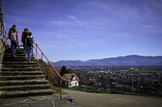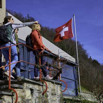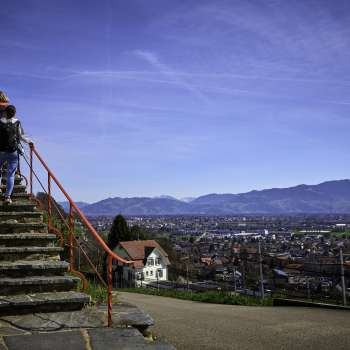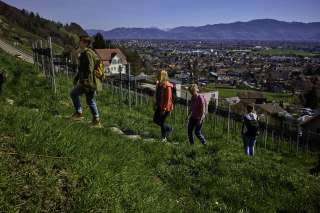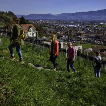 Manger et boire au milieu des vignes avec une vue magnifique sur la vallée du Rhin saint-galloise.