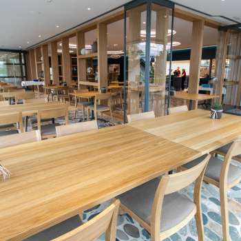 Le Seehuus, situé dans un cadre de rêve, séduit par son aménagement intérieur stylé et son architecture moderne. L'un des points forts est la baie vitrée panoramique qui offre une vue fantastique sur le lac de Constance. Lorsque les températures sont agréables, le vitrage réglable en hauteur peut être entièrement escamoté dans le sol. On obtient ainsi une terrasse spacieuse et protégée avec une transition fluide vers le jardin. La place assise en plein air est ouverte aux clients de la piscine et à tous les visiteurs qui apprécient une atmosphère décontractée. Par temps frais, les clients sont servis dans l'agréable restaurant intérieur.