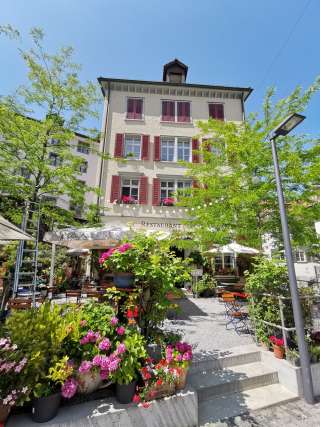 Le restaurant Splügen est situé au cœur de la vieille ville de Saint-Gall, entre la cathédrale et les gorges de Mühlegg.