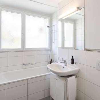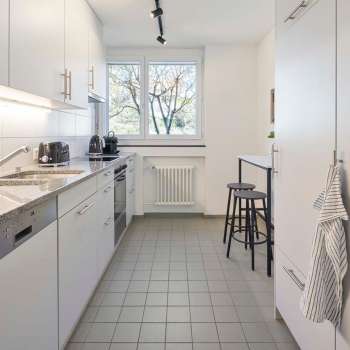 Au cœur de Saint-Gall, au 29 de la Flurhofstrasse, tu trouveras ton appartement meublé de 3½ pièces en location temporaire. 80 m², un quartier résidentiel calme dans un immeuble bien entretenu – et pourtant à seulement quelques minutes à pied de l’hôpital cantonal, de l’hôpital pédiatrique de Suisse orientale, de la vieille ville, de la gare centrale et du parc des expositions Olma. Ta place de parking est incluse.