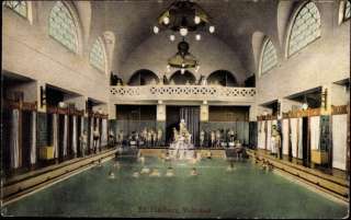 Vers 1900, seuls 18% des appartements de Saint-Gall disposaient d'une salle de bain privée. La demande d'un établissement de bains public était élevée. A l'initiative de l'association médicale ainsi que d'organisations ouvrières comme le Grütliverein et l'Union des travailleurs, la ville a construit en 1904-06 la deuxième piscine publique couverte de Suisse après Winterthour. Elle disposait d'un bassin de natation et de baignoires. Le projet de construction de l'architecte municipal Albert Pfeiffer a été remanié à plusieurs reprises, en suivant des idées directrices déterminantes : Malgré son objectif fonctionnel, le Volksbad devait être agréablement aménagé et donc doté d'une « belle et solide installation ». Cette exigence a été prise en compte par l'aménagement spatial attrayant dans un style Art nouveau sacré ainsi que par la décoration sculpturale de Henri Gisbert Geene.