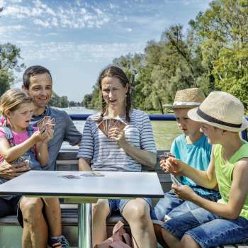 Avec le bateau en service régulier de la baie de Rorschach à l'embouchure du Vieux Rhin. Profitez du paysage fluvial unique en traversant la magnifique réserve naturelle d'Altenrhein jusqu'à la petite ville pittoresque de Rheineck. Laissez votre esprit s'évader tandis que le paysage défile tranquillement et vous emmène loin du quotidien. Observez les hérons, les familles de canards, les cygnes ainsi qu'une multitude d'oiseaux différents.