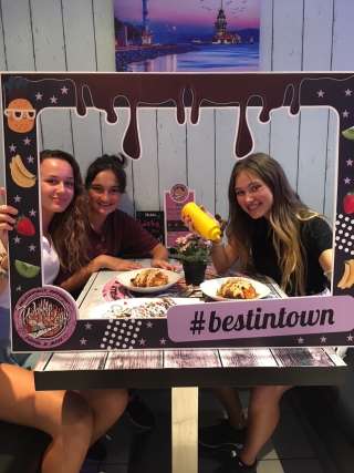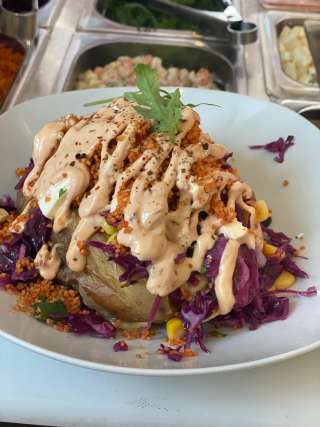 La pâte à gaufres est fraîchement préparée selon la recette maison. Des fruits frais tels que des fraises, des kiwis et des bananes sont ajoutés à la gaufre, tout comme de délicieuses sauces de garniture, des crumbles colorés et d'autres friandises sucrées et salées. Outre les gaufres sucrées et les glaces maison, Waffle Keyfs propose également le Kumpir (pomme de terre en chemise avec fromage à raclette et salade d'accompagnement).
