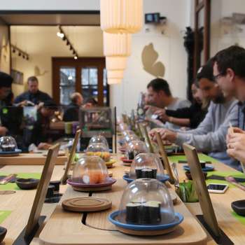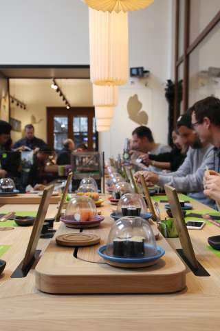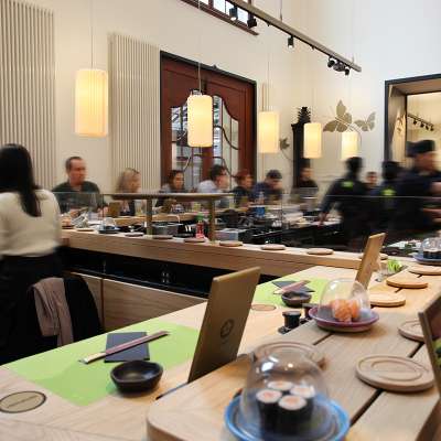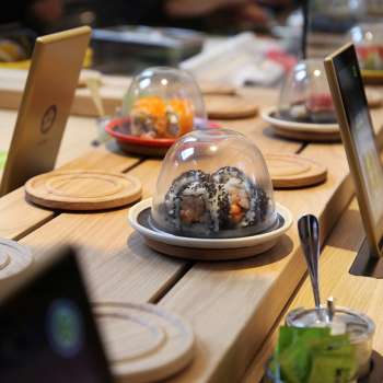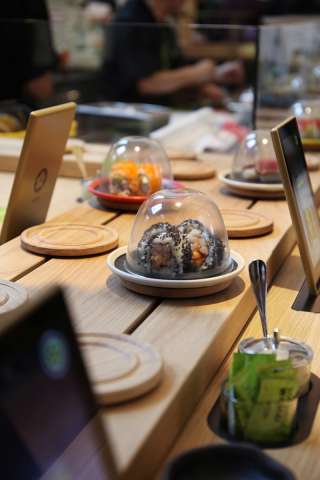 Les plats très diversifiés sont fraîchement préparés chaque jour et peuvent aussi être emportés, assurant ainsi une restauration rapide saine. Pour ceux qui tiennent à plus de confort, le restaurant dispose de 32 places assises au bord du tapis roulant de sushis (encore appelé «kaiten sushi»). Les places assises sont modernes et équipées et d’une tablette pour commander, surfer et jouer.