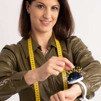 Conny progetta e concepisce il design e il modello individuale per il capo unico desiderato. La cliente viene in atelier 1-2 volte per una prova prima di poter ricevere e indossare il suo capo unico personale.