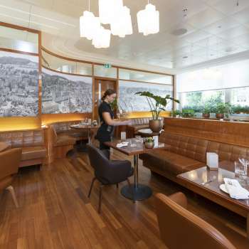 Deliziosi piatti possono essere gustati dall'inizio alla fine in un'atmosfera accogliente ed elegante: Da una colazione a buffet ben equilibrata a piatti internazionali e prelibatezze create con amore dalla pasticceria interna. Al Bistro St.Gallen, gli ospiti troveranno il piacere perfetto in qualsiasi momento della giornata.
