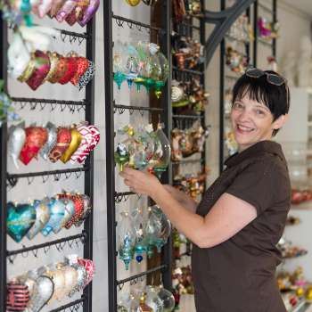 Carmela Lüchinger è stata affascinata dalle decorazioni scintillanti dell'albero di Natale fin da bambina, tanto che ha deciso di trasformare la sua passione in un lavoro che ora svolge in modo autonomo. La collezionista gestisce un negozio adiacente all'abbazia di San Gallo e riceve clienti provenienti da località vicine e lontane.