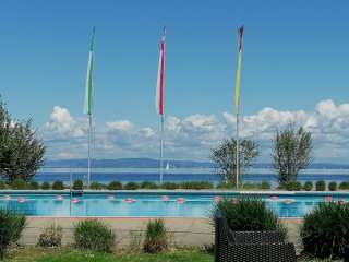 Il lido con postazioni per giovani e «giovani dentro», famiglie e ciclisti si affaccia direttamente sul percorso ciclabile internazionale del Lago di Costanza. In un contesto davvero unico, gli ospiti potranno apprezzare l’immediata vicinanza al lago, l’ambiente acquatico e la vista sulla sponda tedesca. Questo contesto sportivo e informale saprà accogliere al meglio famiglie e comitive, ma anche visitatori singoli di ogni età. Il lido offre le strutture seguenti: - possibilità di nuotare in piscina o nel lago - scivolo di 65 m - trampolino - giochi da spiaggia sul prato per giocare - parco giochi per bambini - ristorante con giardino