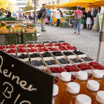 Così come ogni bancarella è varia, lo sono anche le aziende agricole delle famiglie dei commercianti. Verdure regionali, frutta, erbe, prodotti caseari o fiori: qui ci sono cose nuove e collaudate da scoprire e assaggiare.