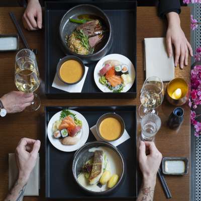Gyoza, sushi, merluzzo nero, waygu e ramen. Questi sono solo alcuni dei piatti offerti. Nella cucina a vista, i commensali possono osservare il maestro al lavoro per preparare piatti raffinati.