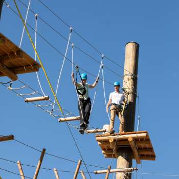 Sui trampolini, grandi e piccini potranno sfogarsi saltando, mentre nel percorso di slackline la concentrazione è un prerequisito per raggiungere il traguardo. Nel percorso di equilibrio su tronchi, diversi elementi invitano ad arrampicarsi, scatenarsi e soffermarsi. Per riprendere le forze di tanto in tanto, sono disponibili diversi lettini relax.