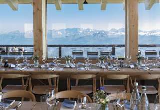 Il ristorante in vetta, opera di Herzog & de Meuron, regala agli ospiti momenti suggestivi a 2.262 m di altitudine, con qualsiasi tempo.