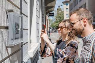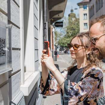 Ammirate gli straordinari edifici del percorso tessile, scansionate i codici QR ricamati e scoprite di più sulla loro storia, architettura e uso attuale. Le spiegazioni degli edifici del percorso tessile sono disponibili anche in inglese. Il percorso tessile può essere scoperto nella città di San Gallo e/o a San Gallo Ovest.