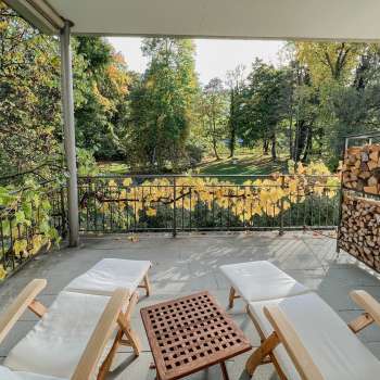 La storica “Turquoise Bath” è una piscina ovale di 5,5 m risalente al 1928. Qui potrete rilassarvi completamente dopo una seduta di sauna. Anche la terrazza solarium con vista sulle cime degli alberi del parco del castello invita al relax.