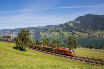 This section of the route runs from the historic textile city of St.Gallen through a rural hilly landscape towards Lake Constance and then along its shore for 40 kilometres. The route then follows the Rhine down to Schaffhausen and its famous landmark, the Munot Fortress. Schaffhausen is also famous worldwide as the location of the Rhine Falls, Europe’s largest waterfall. You can get a spectacular view of the falls from the train. After crossing the magnificent railway bridge at Eglisau, the train comes to the financial centre of Zurich.